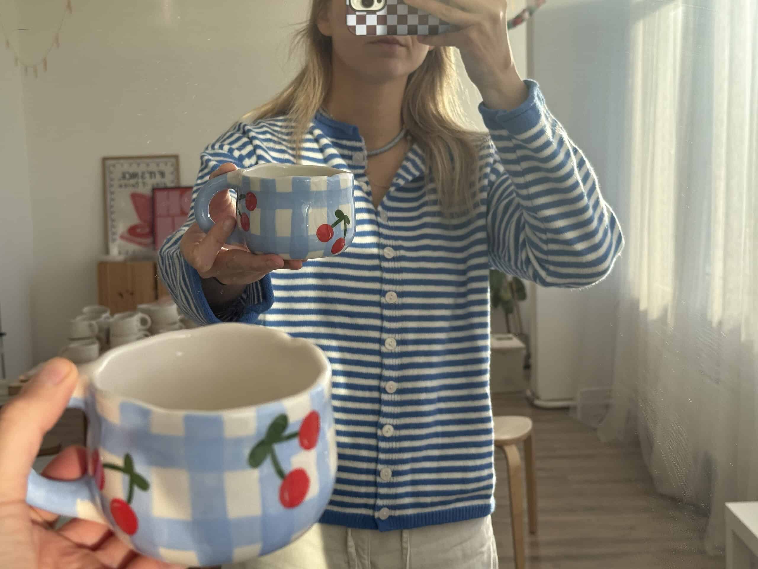 Rankų darbo keramikinis puodelis, kuris tavo ryto ritualui suteiks dar daugiau jaukumo. Kiekvienas gaminys pagamintas individualiai, rankomis, tad net ir to paties dizaino puodeliai niekada nebus identiški. Kviečiame įsigyti mūsų pagamintus puodelius, į kuriuos sudėjome meilę, juoką ir pačias geriausias emocijas. Net neabejojame, jog visa tai kartu su puodeliu ateis ir į tavo namus.