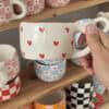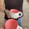 Rankų darbo keramikinis puodelis, kuris tavo ryto ritualui suteiks dar daugiau jaukumo. Kiekvienas gaminys pagamintas individualiai, rankomis, tad net ir to paties dizaino puodeliai niekada nebus identiški. Kviečiame įsigyti mūsų pagamintus puodelius, į kuriuos sudėjome meilę, juoką ir pačias geriausias emocijas. Net neabejojame, jog visa tai kartu su puodeliu ateis ir į tavo namus.
