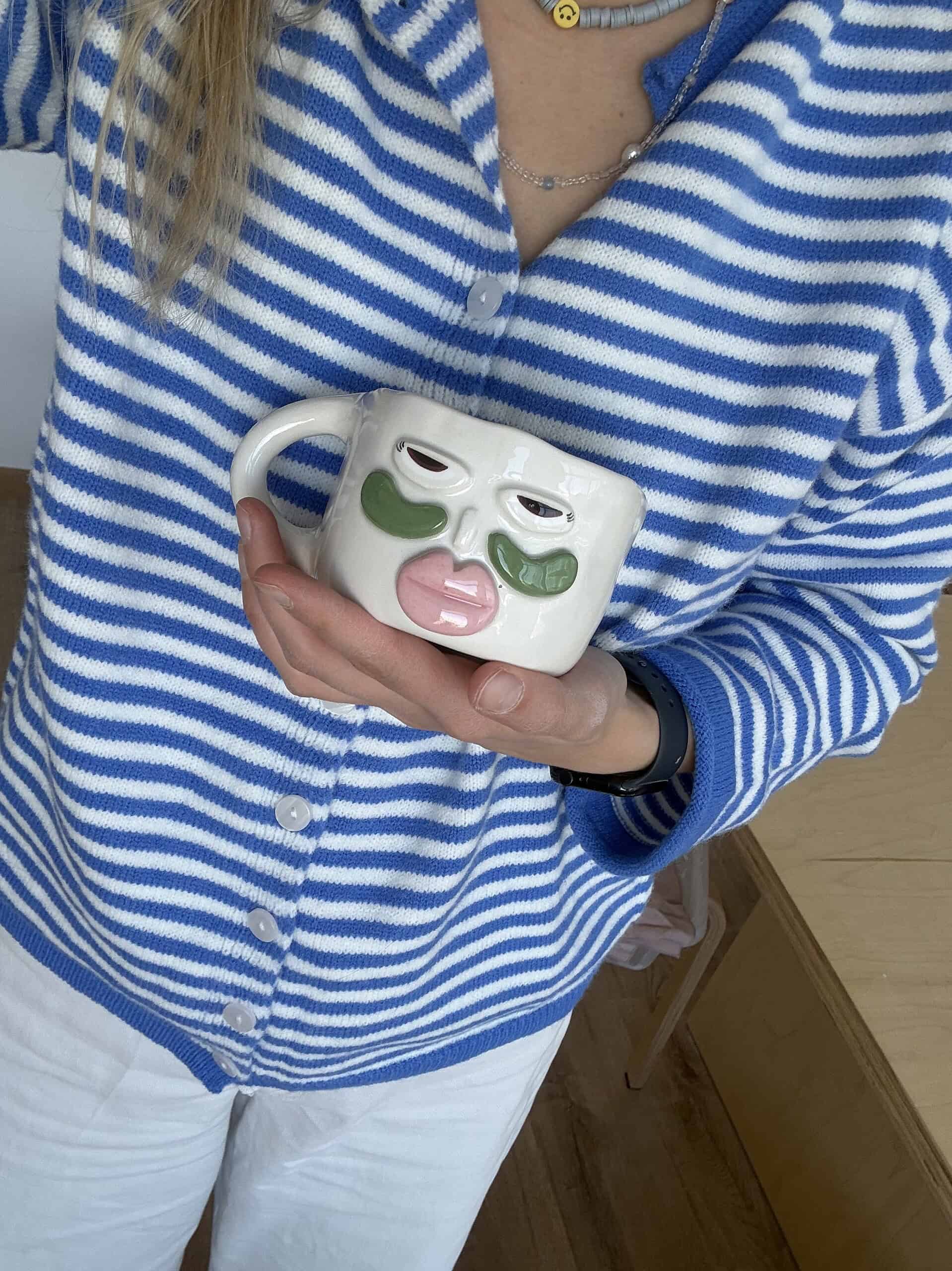 Rankų darbo keramikinis puodelis, kuris tavo ryto ritualui suteiks dar daugiau jaukumo. Kiekvienas gaminys pagamintas individualiai, rankomis, tad net ir to paties dizaino puodeliai niekada nebus identiški. Kviečiame įsigyti mūsų pagamintus puodelius, į kuriuos sudėjome meilę, juoką ir pačias geriausias emocijas. Net neabejojame, jog visa tai kartu su puodeliu ateis ir į tavo namus.